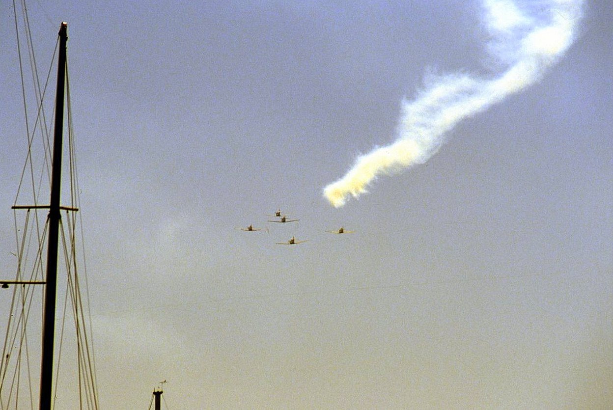 5 North American or Noordyn Harvards over Oak Bay, Victoria, BC