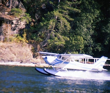 Cessna 172 taking off in Bird’s Eye Cove (Maple Bay, BC)