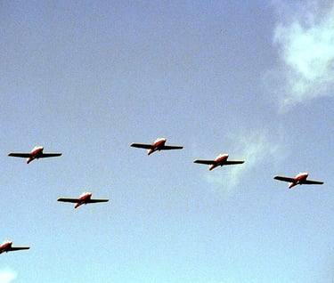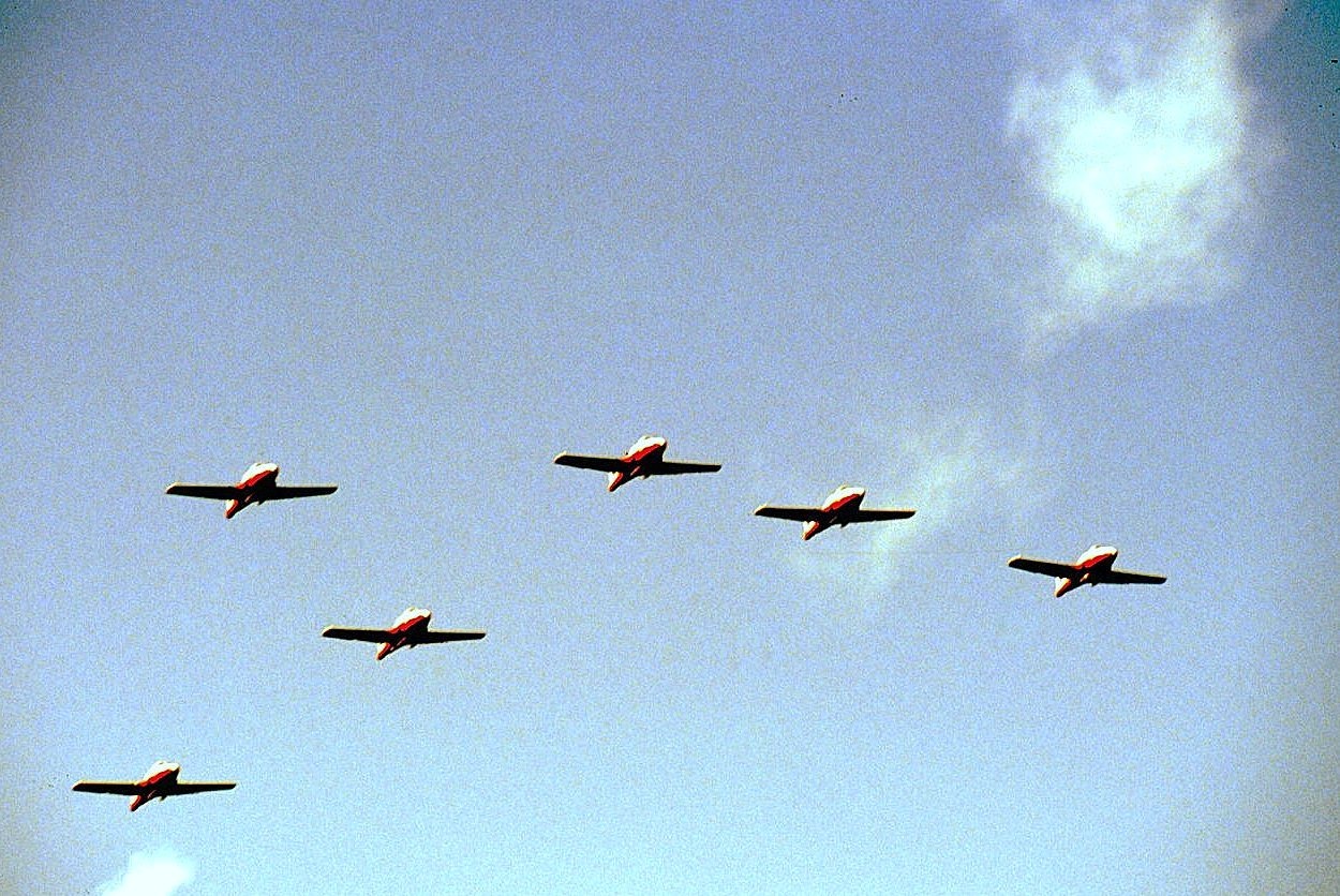 formation of 6 a/c at CYYJ Airshow . 3 August 1993