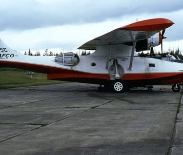 Consolidated Super Catalina (2800 hp P&W/Pratt & Whitney radial engines) SLAFCO Inc ,EPHRATA,Wa. Changing a jug (jug : cylinder) on port engine. At CYZT