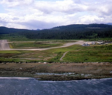 C-FKAW BN2A Islander AirBC on final to CYZT Rwy 15/33 (in 2014 it's Rwy 16/34). 22 June 1981