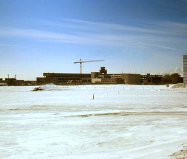 Calgary Airport ongoing construction. Viewing south-west from an access road. 3 March 1978