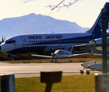C???? Boeing 737 PWA (Pacific Western Airlines) a scheduled flight from CYVR taxiing to CYZT’s airport terminal .