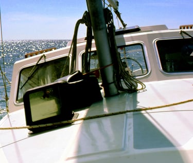 14 August 1985 - mother-in-law had given us a teddy bear dressed as a sailor - SV Intention On a lovely port beam reach only using my 150% Genoa (main sail was never used for this pilot-house motor sailer) off Gower Point, Gibsons,BC) in Strait of Georgia. (had shredded my 170% genoa sailing outbound with the Fraser River current at Steveston into the teeth of 25 knot westerly) To take this photo I was wearing my Mustang Floater coat and secured to a deck lifeline at the Bow (the most forward point of any boat) This sailing vacation was to discover what all the hype was concerning Desolation Sound? = too much hype ! https://www.hellobc.com/places-to-go/sunshine-coast/https://www.insidevancouver.ca/2011/08/25/steveston-fishing-village-a-photo-essay