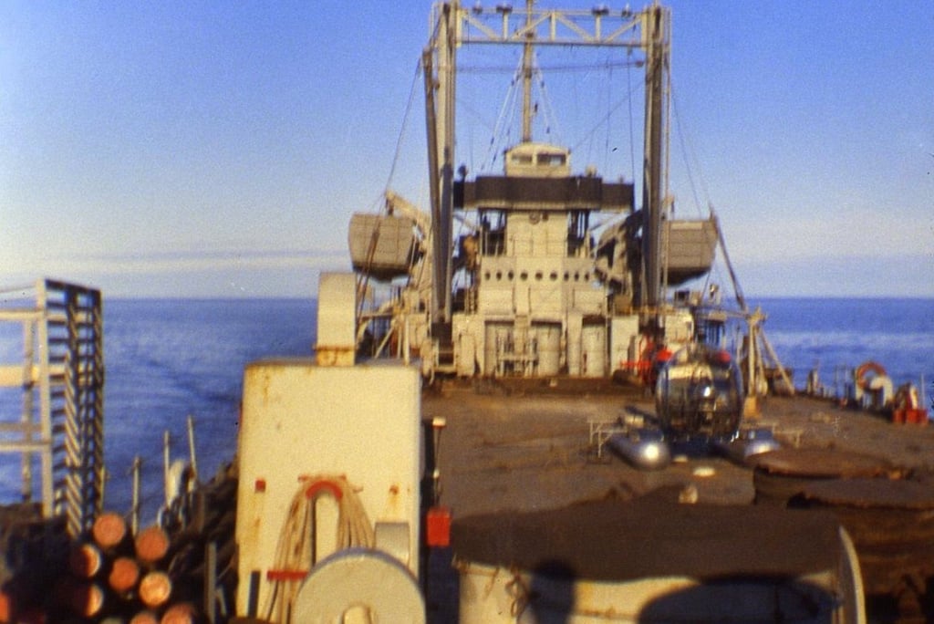 Bell 47G helicopter on the deck of LST 692 (the ship carried one to be used to search for “leads” in the Arctic ice pack. The year round ice pack wouldn’t recede until July 1st. We carried supplies to Canadian DEW Line sites located between Herschel Is (NWT/Alaska border of Beaufort Sea) to the West, and East to Gjoa Haven?/Spence Bay? on S W side of Boothia Peninsula