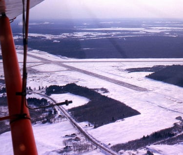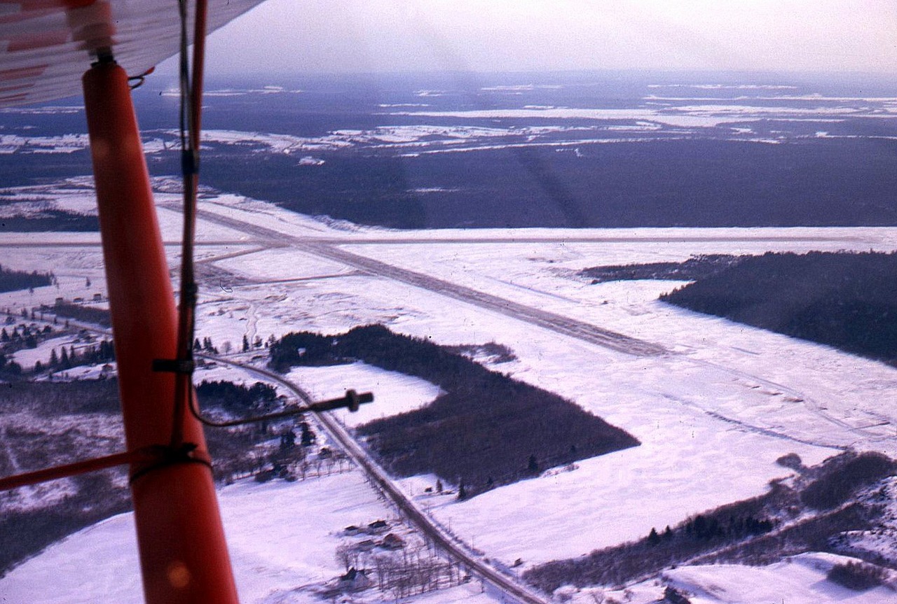I was attending University of New Brunswick, at Fredericton,NB (1961-62-63). Began flying instruction 10 October 1962 at CYFC/Fredericton airport. Training on Fleet Canucks. This is view outside my left side window on one of my solo flights.