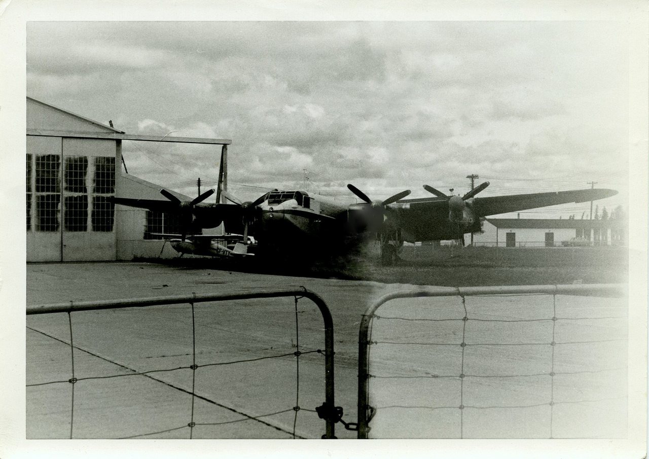 Hauled construction material in early 1950’s to build the DEWLine . CF-VTY Cessna 140 under the York’s starboard wing . In 1965 was purchased by unknown buyer for scrap value; but, vandals set it on fire before being cut up. The wings salvaged by a local resident. Vintage a/c restorer 'Bob Diemert' from southern Manitoba acquired the four Merlin engines.(courtesy Robert Arnold to 'thenetletter.net Issue 1201, April 17) It was towed down the road, engines and props removed, made into a hot dog stand (courtesy Ross Taylor-former Transair AME to Ken Kalynuk - 5 May 2016