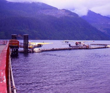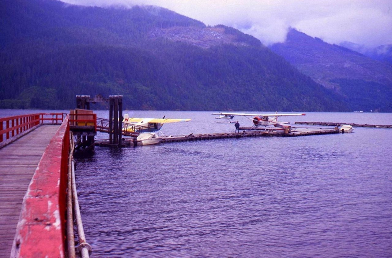 CF-RJV, Nootka Air's FBA-2C, CF-xxx BCAL/BCAir Lines DHC-2 Beaver at ZTS/Tahsis government' wharf (red railings)