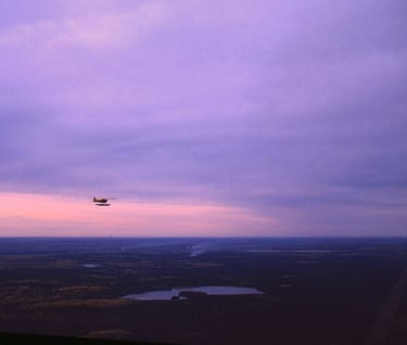 CF-OCB GBA’s DHC-2 ,pilot “Bruce Taylor”) early evening flying south-west of CYTS.