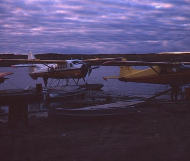 (from left to right) GBA’s CF- Piper PA-!8 , “White River Air Service” CF-DHC-3 Otter and GBA’s CF-OCB DHC-2 Beaver