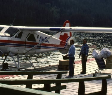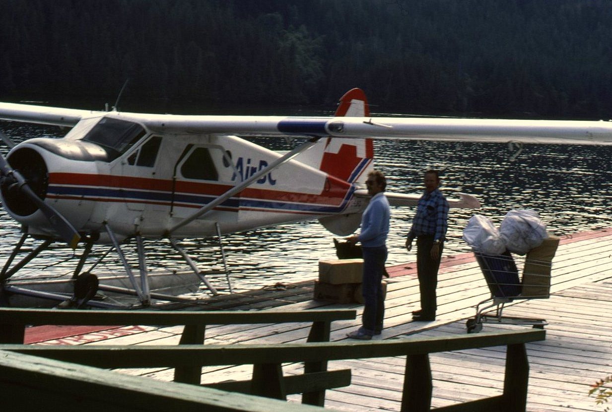 C-FJFQ 'AirBC' tied to dock at Dawson’s Landing