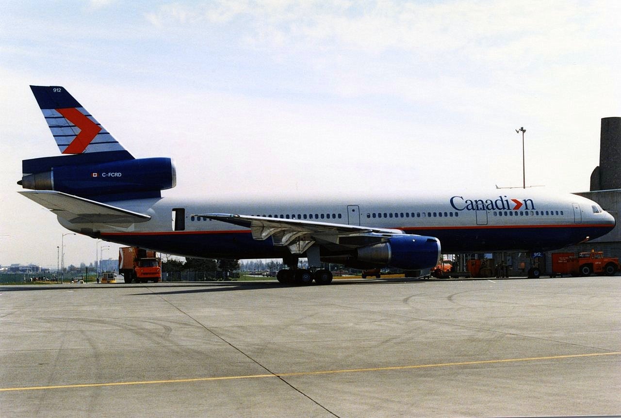C-FCRD Douglas DC-10 (fin 912) Canadi>n at CYVR’s International Departures' Gate 31. 11:50PST April 2,1987