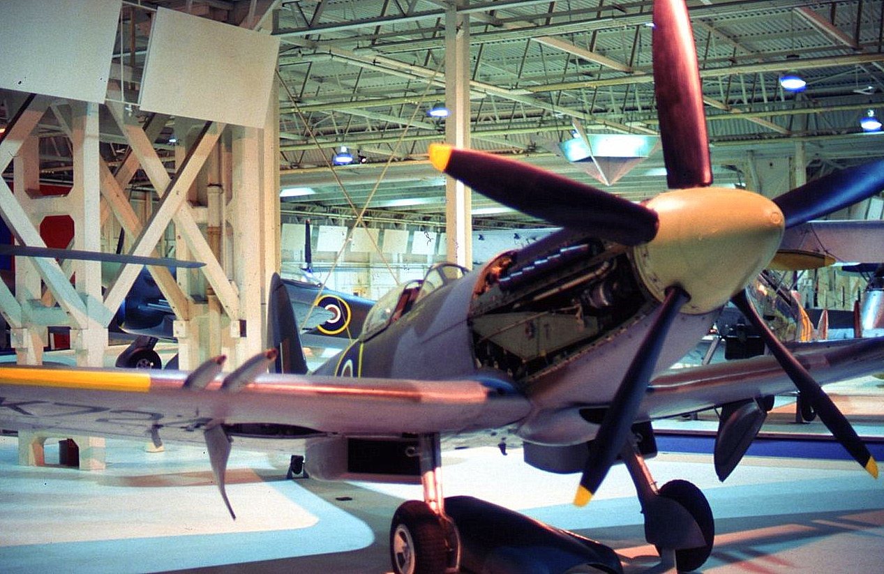 Supermarine Spitfire Mk I fighter c/w 1030hp Merlin engine & 5 blade metal ‘prop’ RAF Museum London (former Hendon aerodrome). 25 September 1987