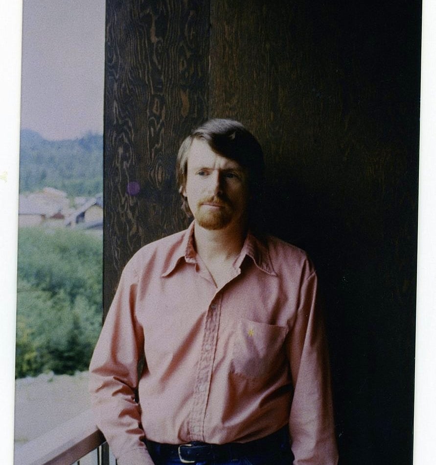Hugh MacCallum - self portrait - on balcony of my 3rd floor apartment (on Park Drive across from highschool in Port Hardy. Appearance more presentable for AirBC's passengers in my capacity as Customer Service Agent at ZX/AirBC CYZT's check-in counter late September 1981