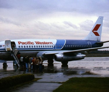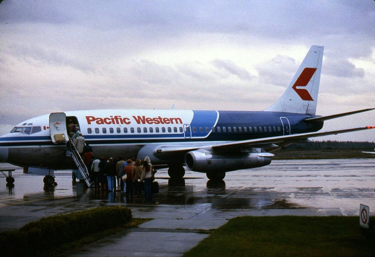 C-G??? Boeing 737 (fin # 341) PWA at CYZT loading passengers for Vancouver (I was one of last passengers to board as next picture is the next day in CYVR). 1900 on 27 September 1981