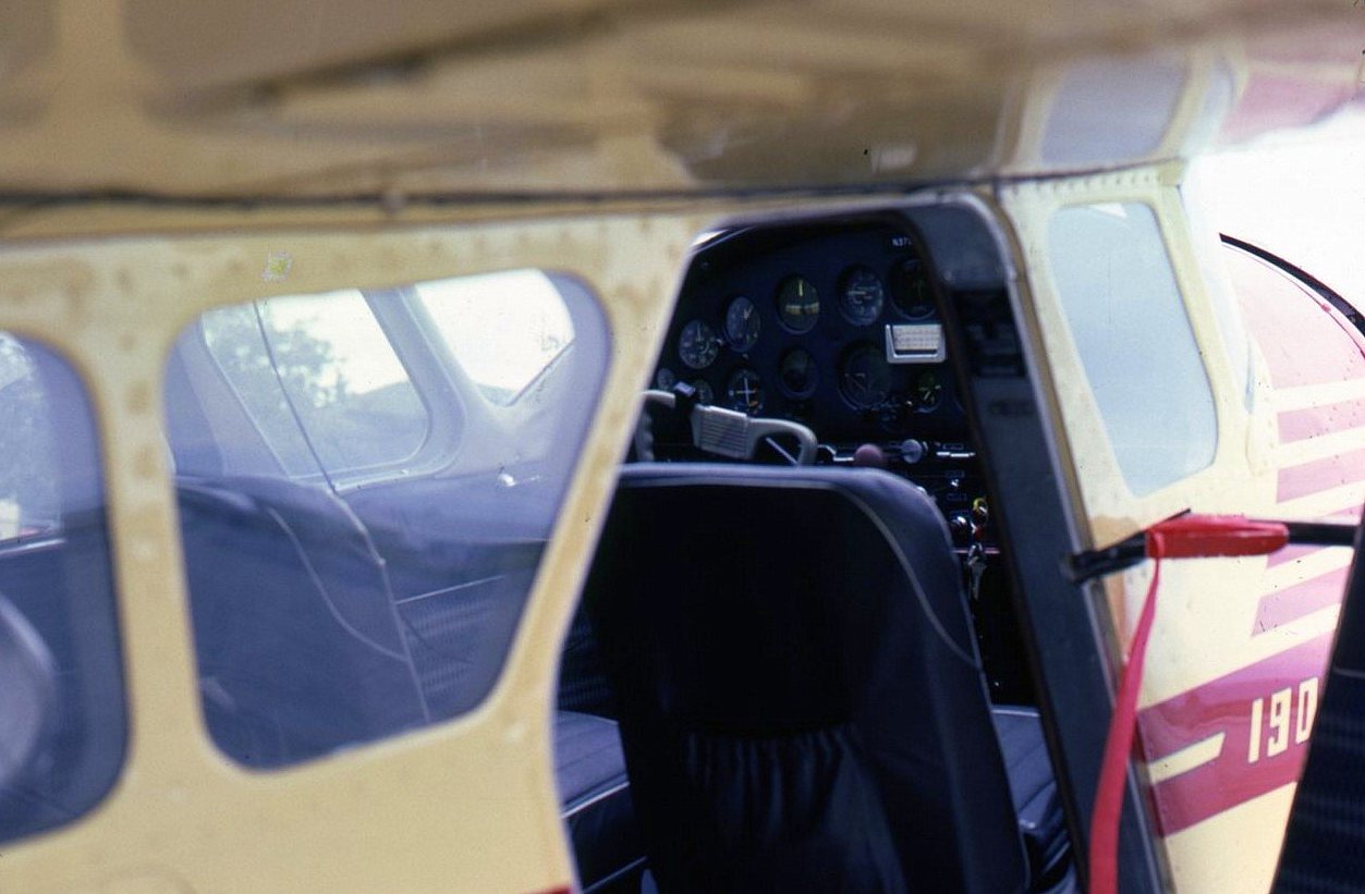 N365G Cessna 190 (cockpit interior as if over the co-pilot's right shoulder) American owner stopped at CYZT for fuel enroute to/from continental USA and Alaska. 19 July 1982