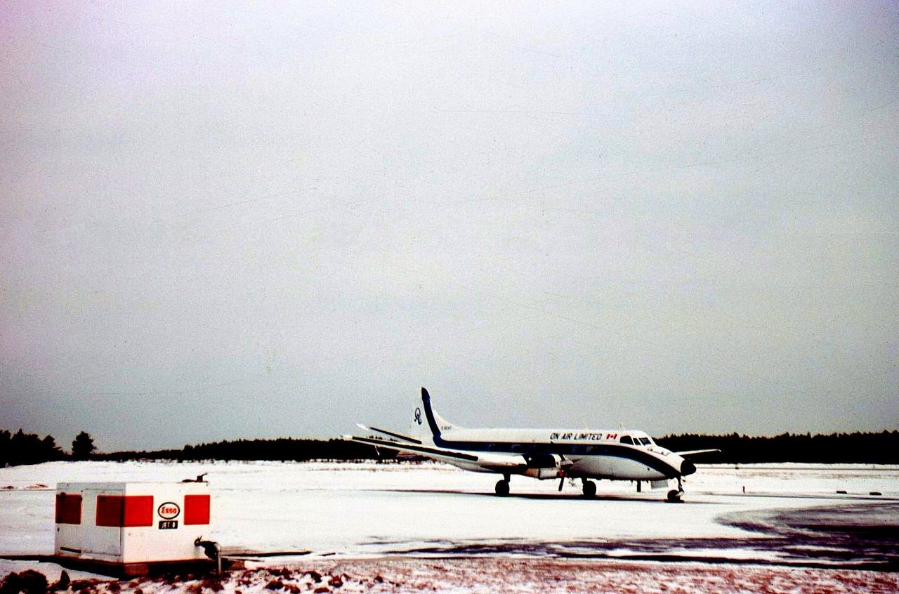 C-GCAT ON AIR LIMITED at CYHD/Dryden,Ontario airport 22 March 1977 (registration research with Ken Kalynuk early January 2019 ;