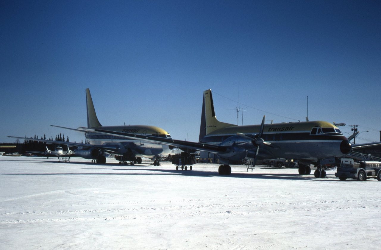 CF-Hawker Siddely HS 748 TransAir --- on the tarmac at YTH/Thompson,MB April 1971