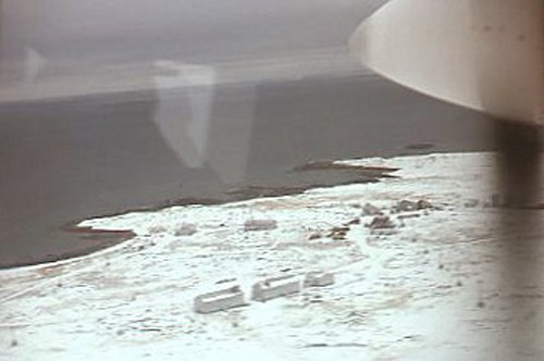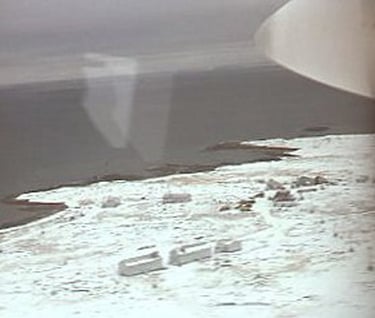 I was sitting on right side of CALM Air's DHC-6 CF-VTL , ahead of the propellor but behind co-pilot’s bulkhead. Captain was Ron McLeod. 10 October 1976 Chesterfield Inlet's Airport located at 63 20’ 50” N, 090 43’ 52” W. Wikipedia.