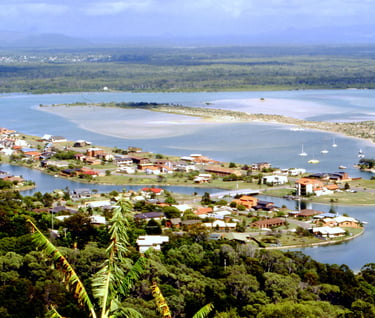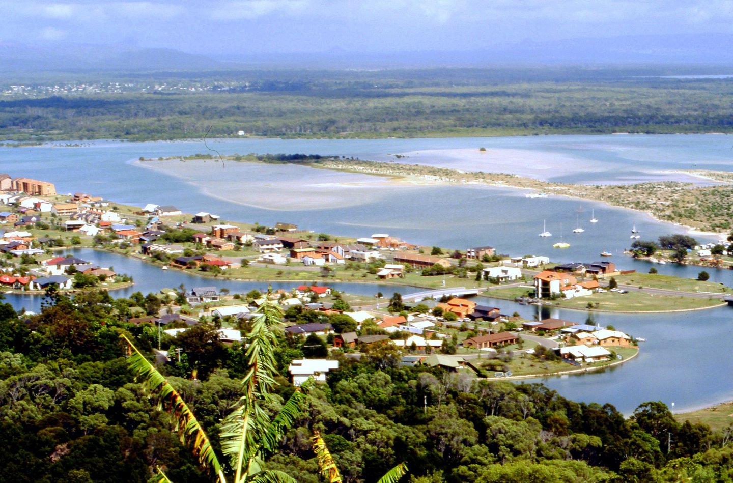 Noosa Heads 17 February 1981 - viewing north-west over Noosa Heads and Noosa River which flows in to Pacific Ocean along Australia’s East Coast https://en.wikipedia.org/wiki/Noosa_Heads,_Queensland https://en.wikipedia.org/wiki/Noosa_River